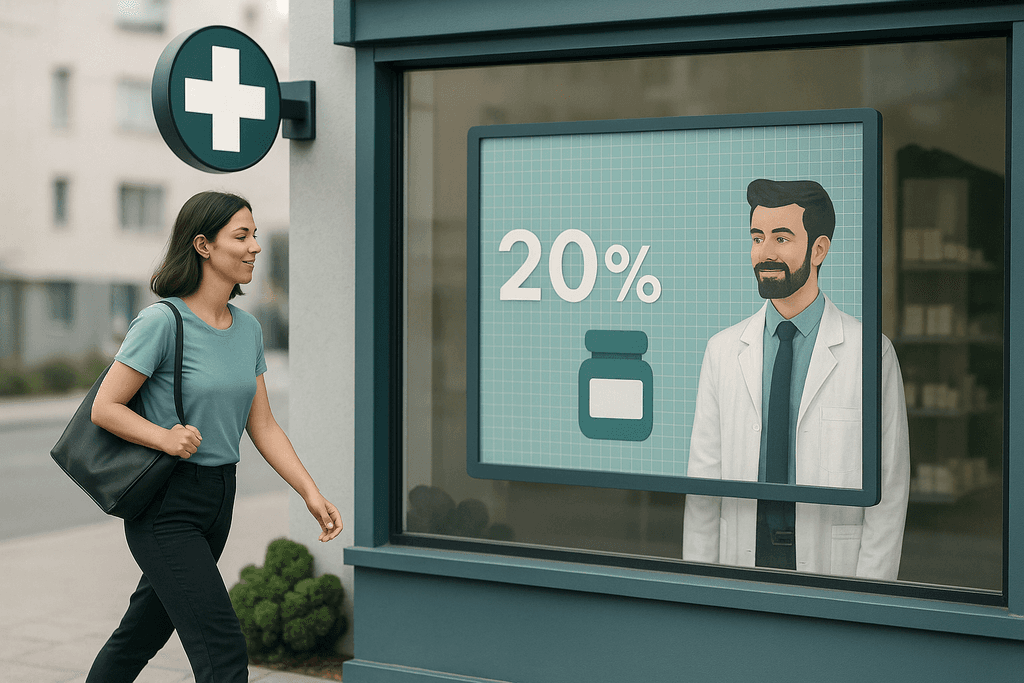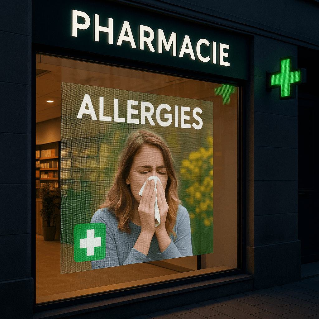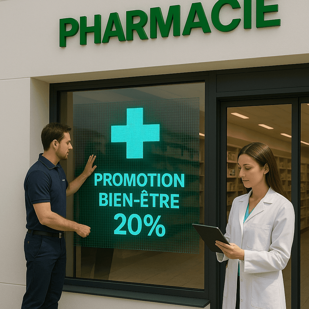 90% des pharmaciens sous-exploitent leur vitrine. Avec nos écrans dynamiques, attirez plus de passants et transformez-les en clients.
